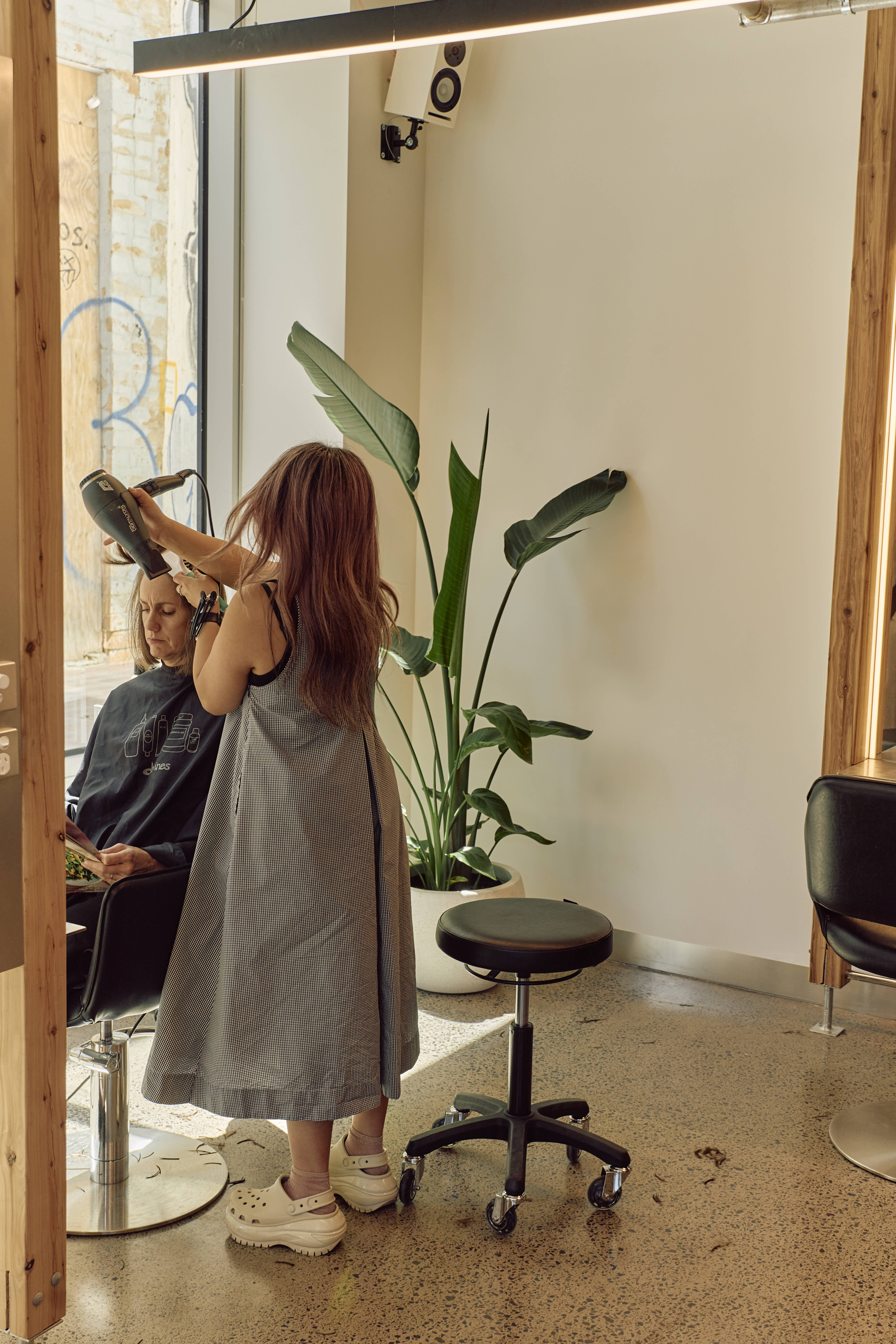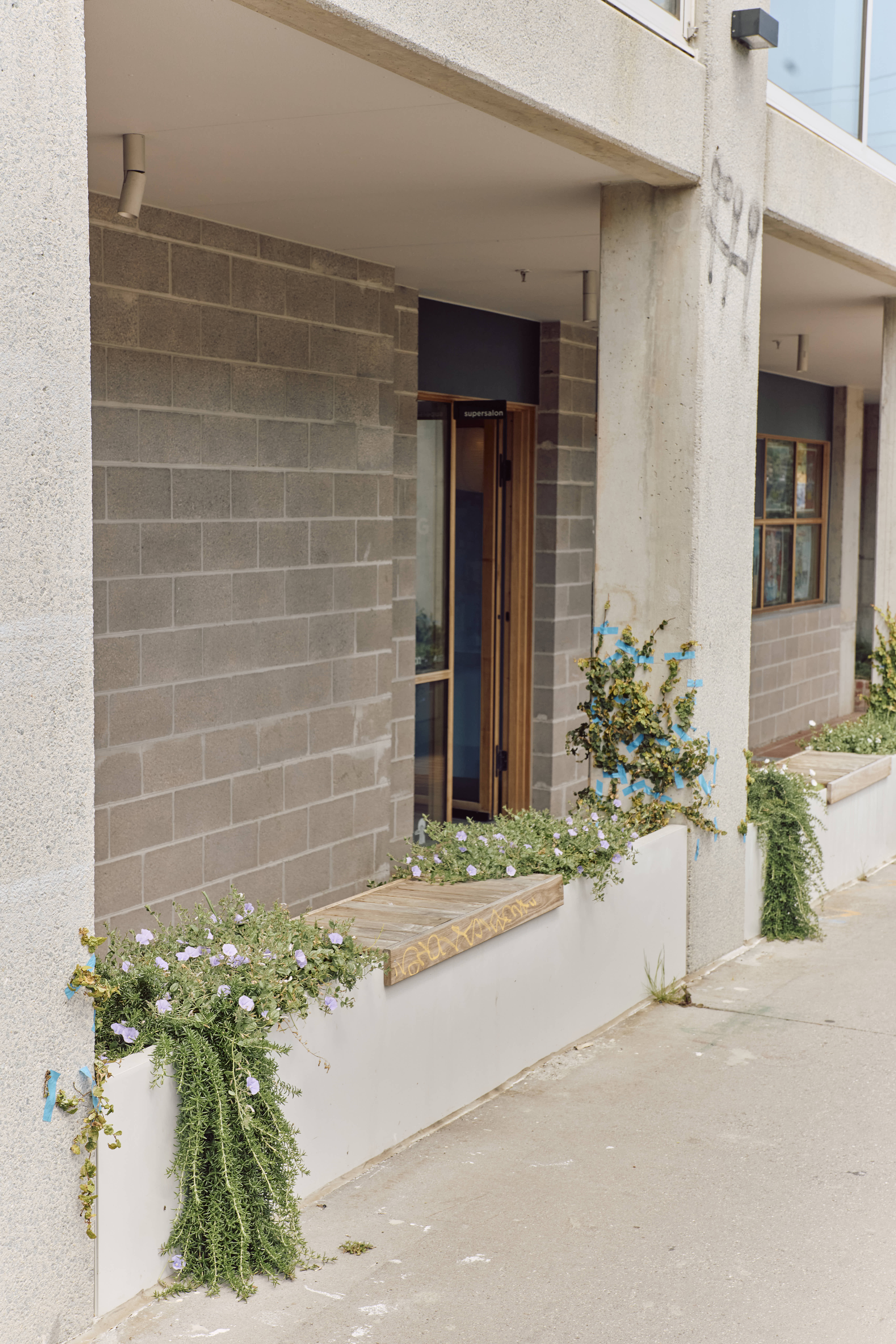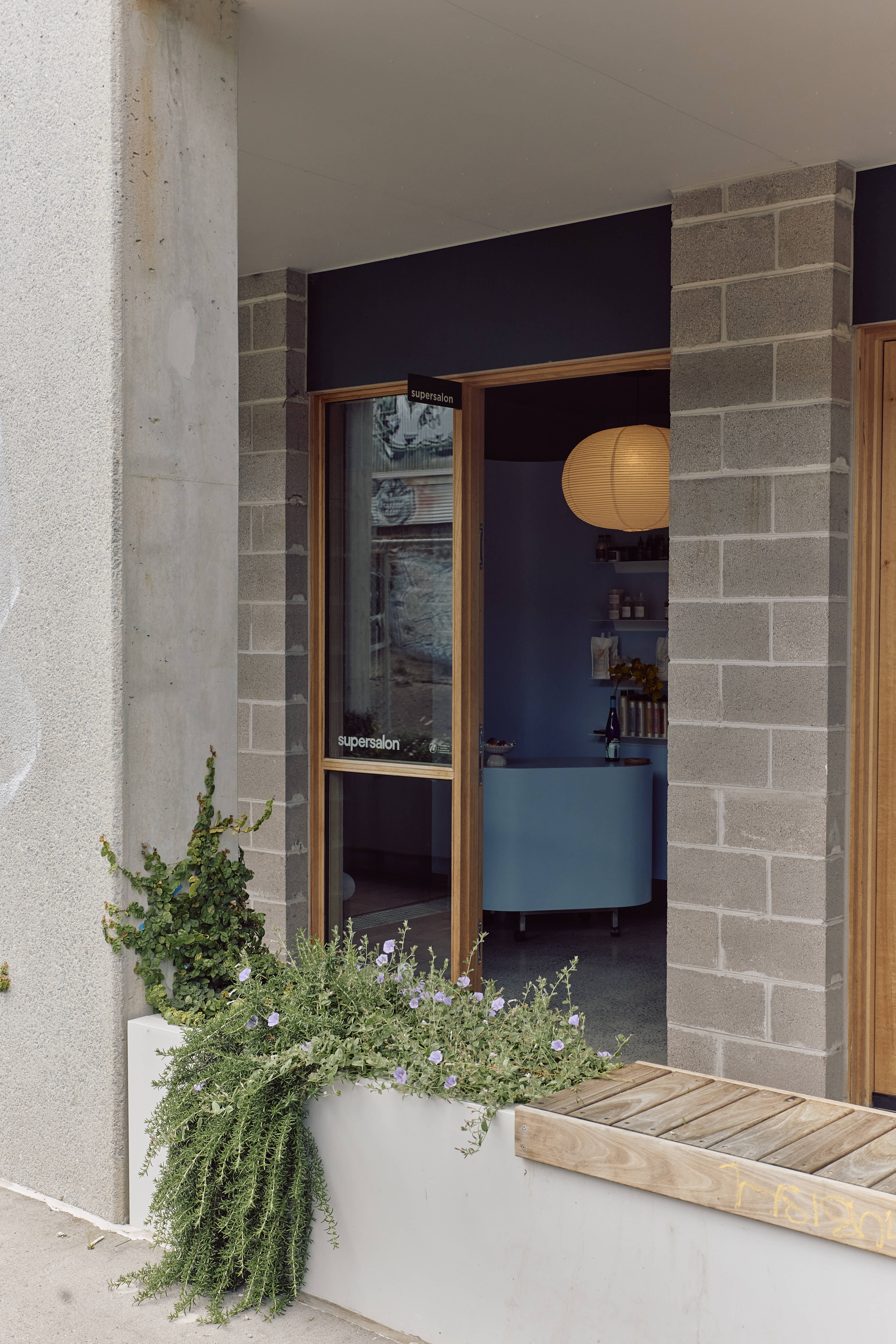Supersalon, the new space for cutting specialist Jess Wang, is located at Nightingale Wurru Wurru Biik. The design goal was to create a salon that is immediately welcoming and calm, mirroring the tranquil feeling Jess brings to her work. Situated adjacent to the Upfield bike path, the salon is wrapped in windows that allow ample sunlight into the space from a covered walkway.