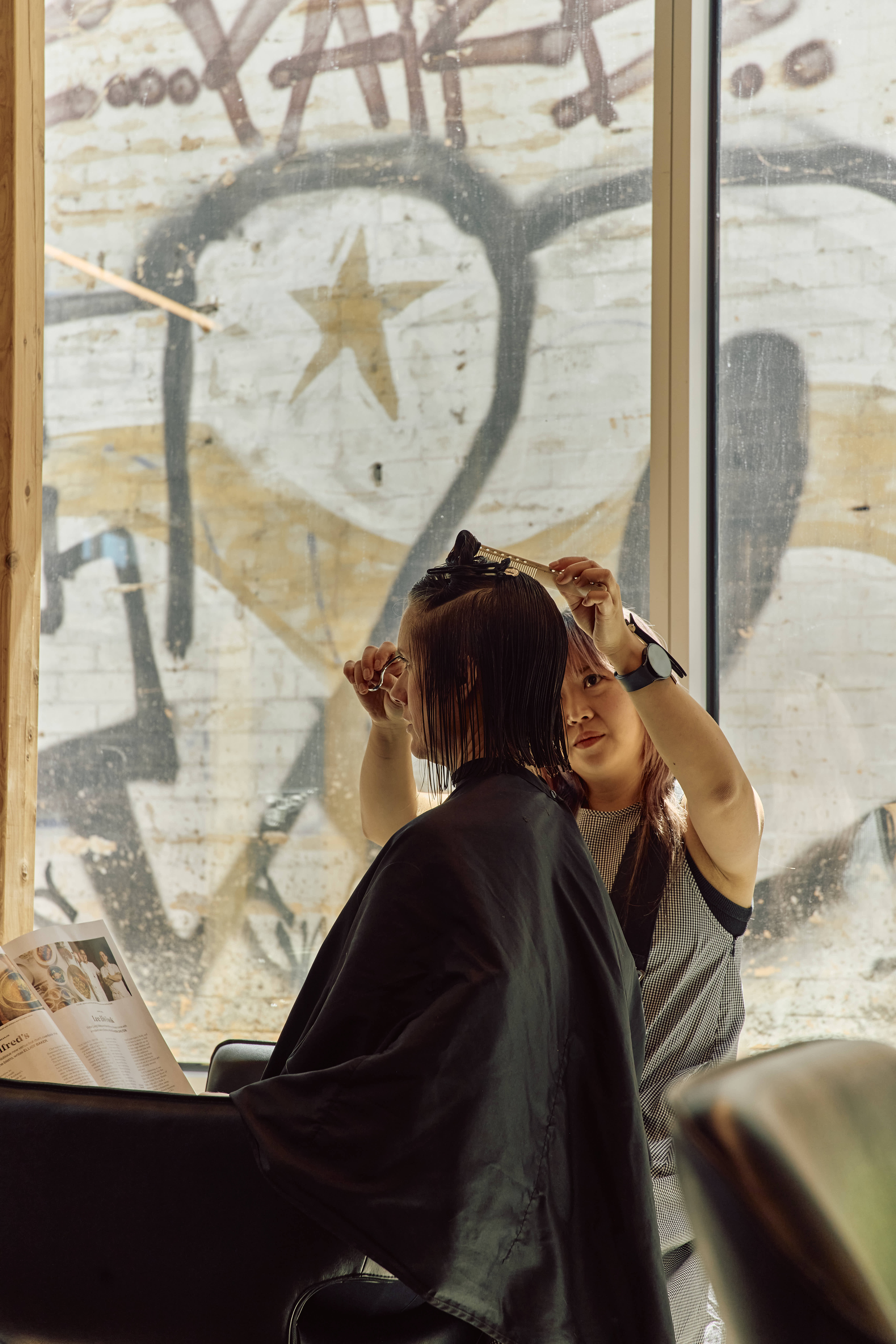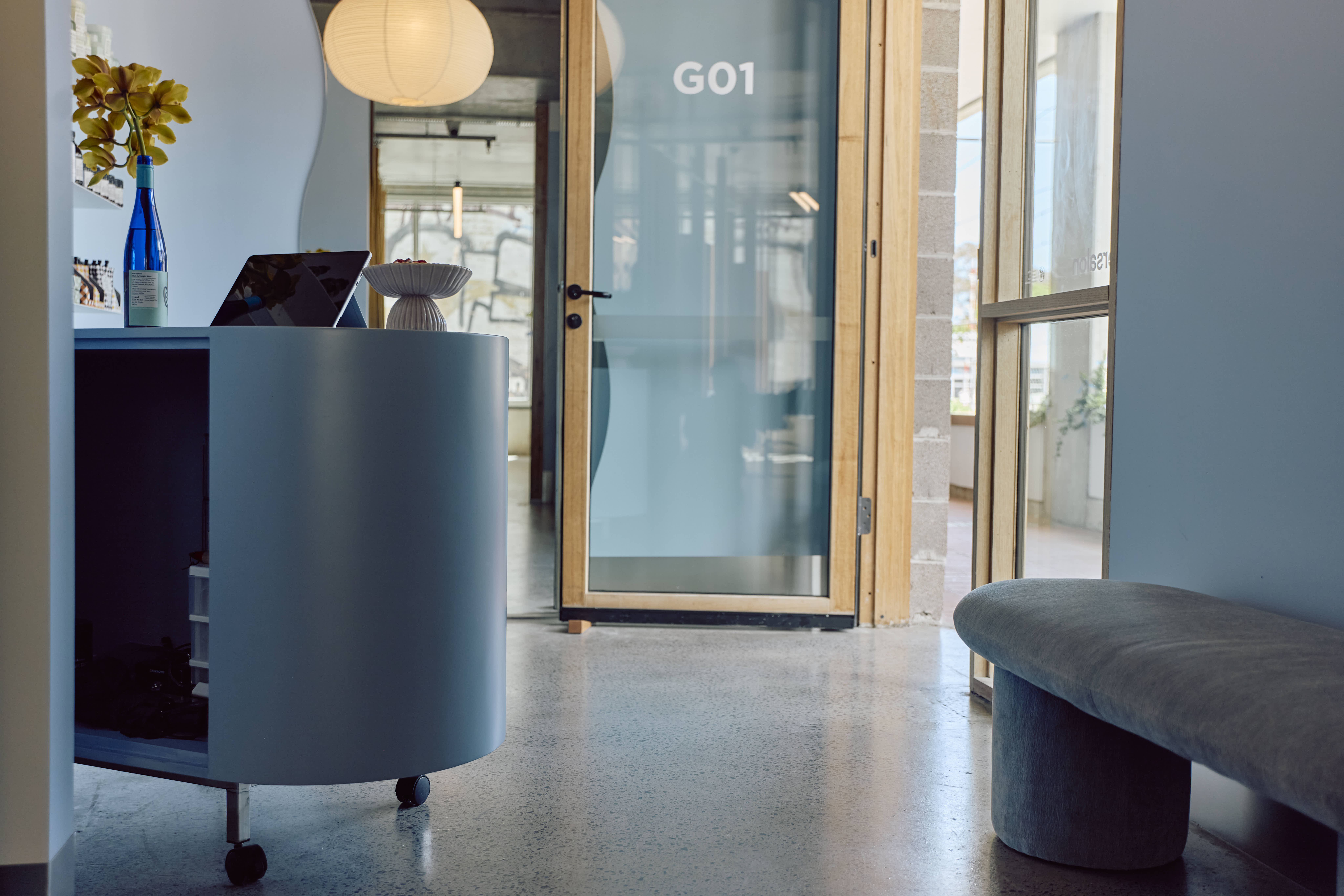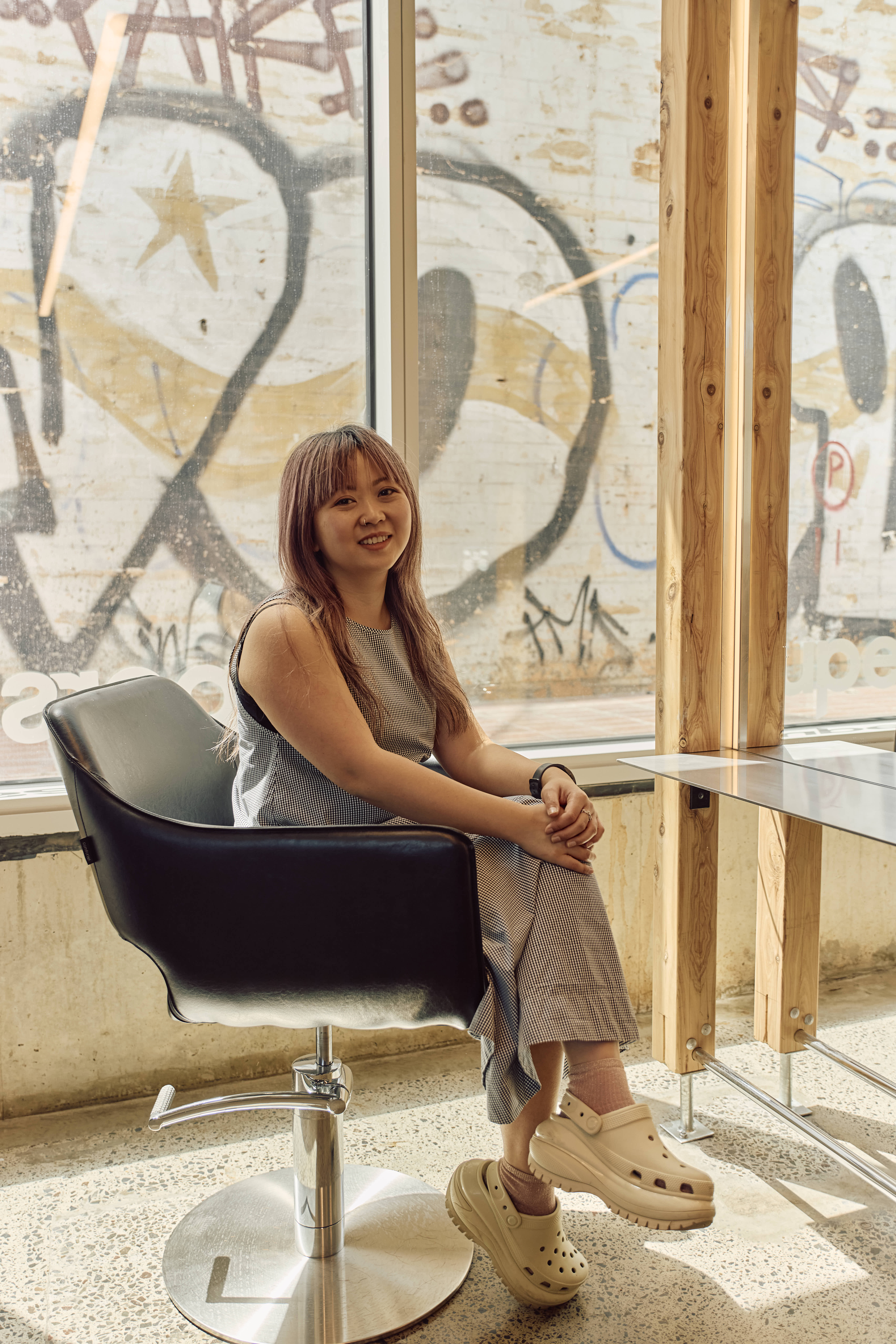 Supersalon, the new space for cutting specialist Jess Wang, is located at Nightingale Wurru Wurru Biik. The design goal was to create a salon that is immediately welcoming and calm, mirroring the tranquil feeling Jess brings to her work. Situated adjacent to the Upfield bike path, the salon is wrapped in windows that allow ample sunlight into the space from a covered walkway.